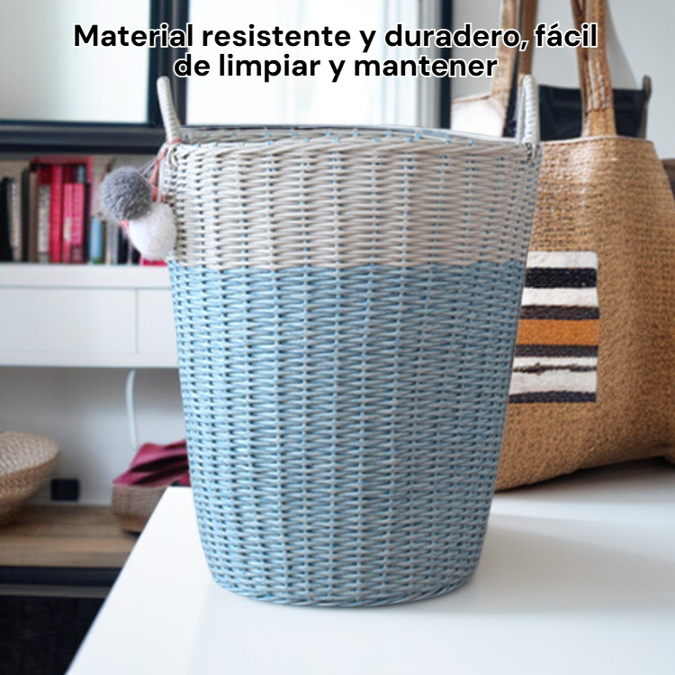 ● Diseño de imitación ratán que aporta un toque elegante y moderno a cualquier espacio, integrándose perfectamente en la decoración del hogar. ● Gran capacidad de almacenamiento ideal para ropa sucia, juguetes o artículos del hogar, ayudando a mantener tus ambientes ordenados y limpios. ● Material resistente y duradero, fácil de limpiar y mantener, lo que garantiza una larga vida útil sin deformaciones ni malos olores. ● Ligera y con asas ergonómicas, facilita el traslado de la cesta incluso cuando está llena, haciendo más cómodo el día a día. ● Ventilación óptima gracias a su diseño trenzado, evitando la acumulación de humedad y malos olores en la ropa sucia.