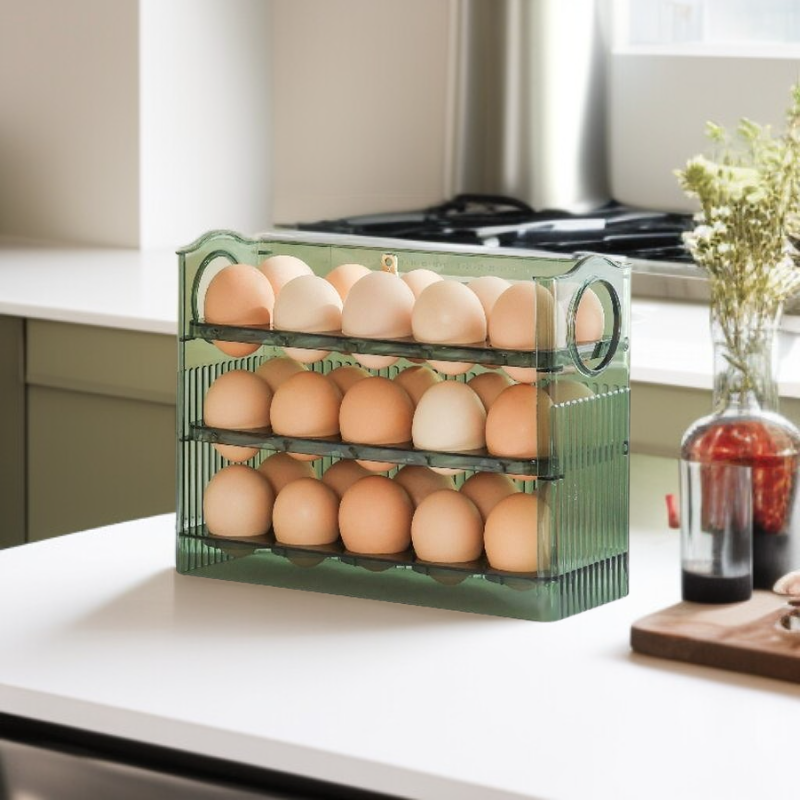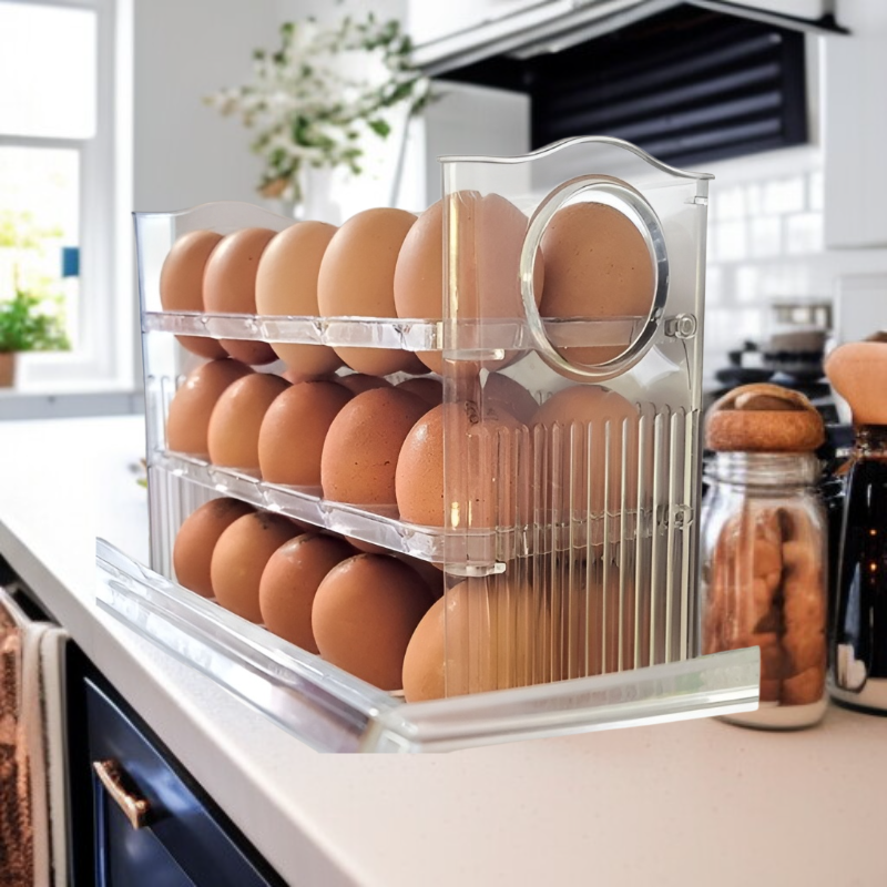 ● Gran capacidad de almacenamiento con espacio para hasta 30 huevos, ideal para familias numerosas o quienes compran en grandes cantidades. ● Diseño de varias capas que permite organizar y proteger los huevos, evitando roturas y facilitando el acceso a cada unidad. ● Fabricada con materiales resistentes y seguros para alimentos, garantizando la frescura y conservación óptima de tus huevos por más tiempo. ● Tamaño compacto y apilable que ahorra espacio en tu nevera, manteniendo todo ordenado y al alcance de la mano.